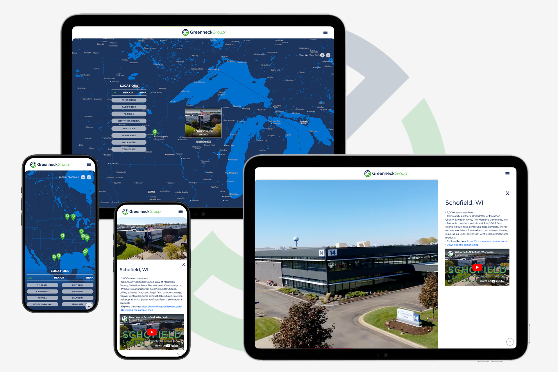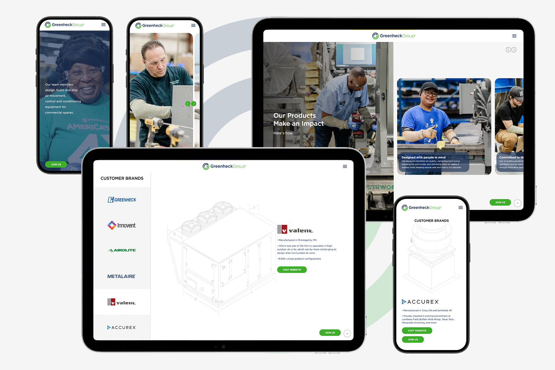 To complement the refreshed collateral and signage, Creative Shoebox developed a modern, user-friendly website for Greenheck Group. Designed to attract top talent and showcase the company’s innovative culture, the site features intuitive navigation, dynamic visuals, and compelling content. The new website not only reinforces Greenheck’s brand identity but also serves as a powerful tool to engage prospective employees and highlight the extraordinary opportunities within the company.